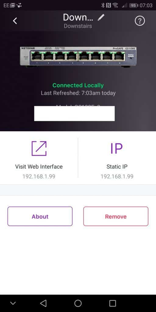 Once added I find the app very slow to update the status of the switches. If you have the device in PC mode, it will appear offline in the list, and there is no way to switch it to app mode in the app itself. So, if you do some management via the browser don’t forget to change it back.