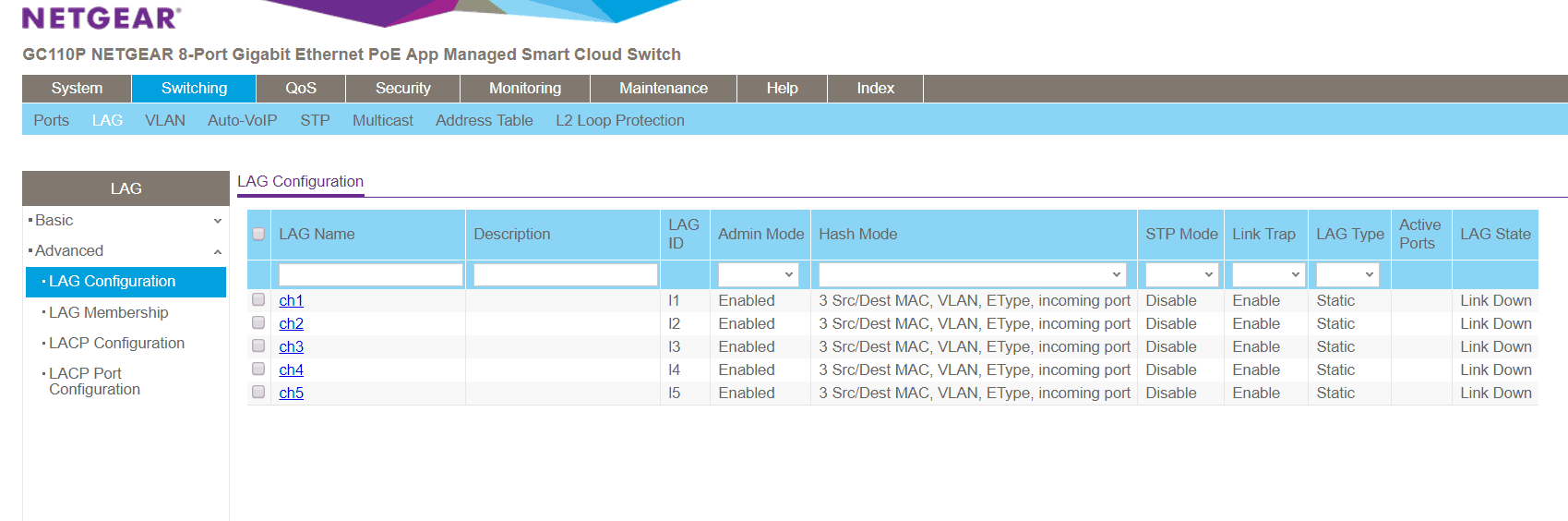I will admit, a lot of the features go beyond what I need and understand. Apart from the POE and future Insight management possibilities the key features that I will/may implement are Link aggregation (LAG) and VLAN. I already have 2 Cisco SG 200 switches that support LAG and I will likely set up LAG on my main PC and Server – it probably won’t have a huge benefit in my small user environment as I believe LAG doesn’t double the speed for a single user, but it should at least help with speeds when more than 2 of us are accessing data on the server.
