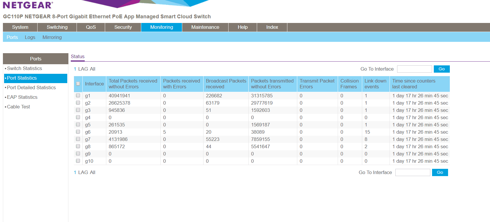 This is the option I went with initially so that I can check things were up and running as quick as possible. The web interface is very similar to the budget smart switch GS108Ev3 but just with a lot more options and features.