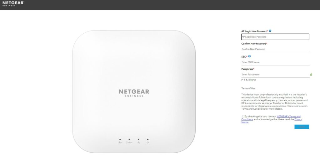 With this, you need to power the AP up, it will then broadcast a specific config SSID that is secured with the password located on the back of the AP.