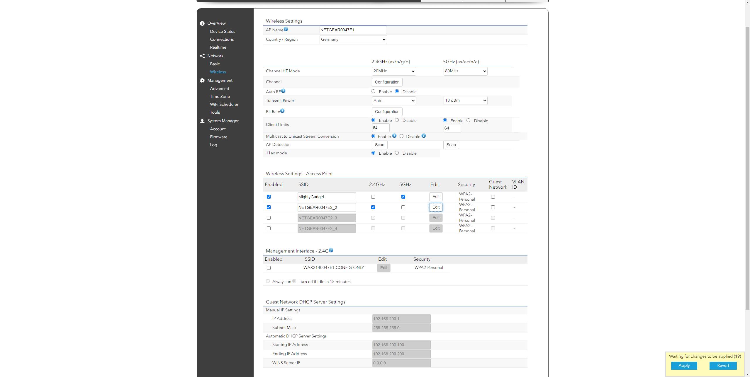 Once the access point reboots, you can change the settings to your liking. With this being an access point, it is quite basic. The main thing is the WiFi settings allowing you to have up to 4 SSIDs.