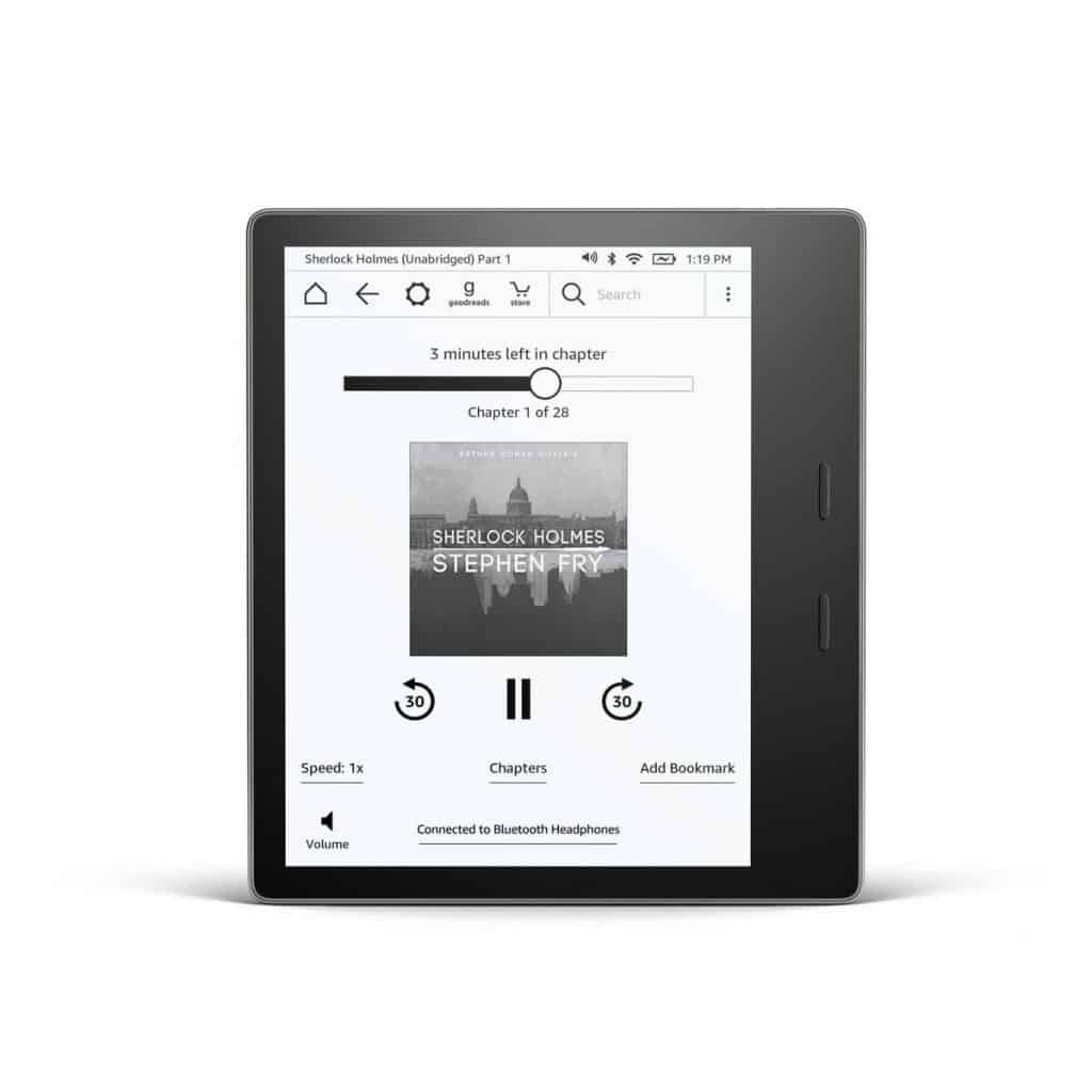 Audible will be available on the all-new Kindle Oasis via a free over-the-air update when the device ships—and it will be available via a free over-the-air update to Kindle (Gen 8) and the first Kindle Oasis in the coming months.