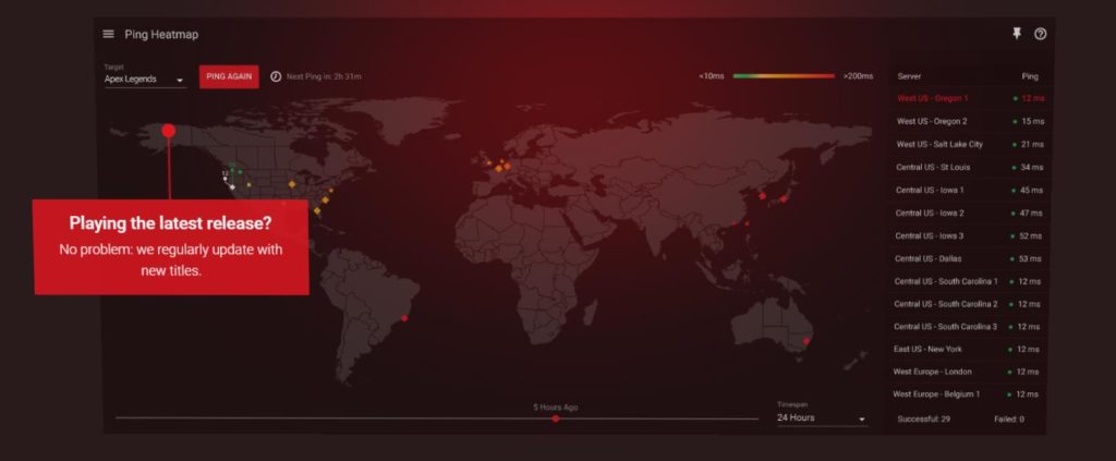 - Ping Heatmap—Pings your favourite game servers to display your connection quality to each server on a World Map.