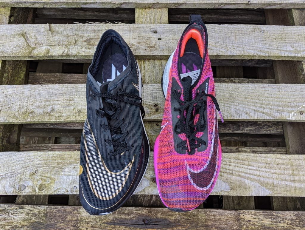 They both have ZoomX foam, which is bouncy and responsive underfoot, and both have a full-length carbon fibre plate.