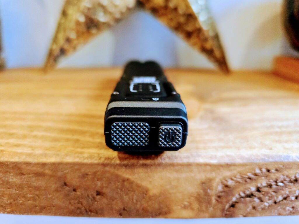 The Nitecore EDC25’s slim, flat design sets it apart from traditional tubular flashlights. The aluminum alloy body is sturdy and features a hard-anodized finish for durability. The dual tail switch allows for easy one-handed operation, with the ability to turn the light on/off, change brightness levels, and access strobe or turbo modes quickly.