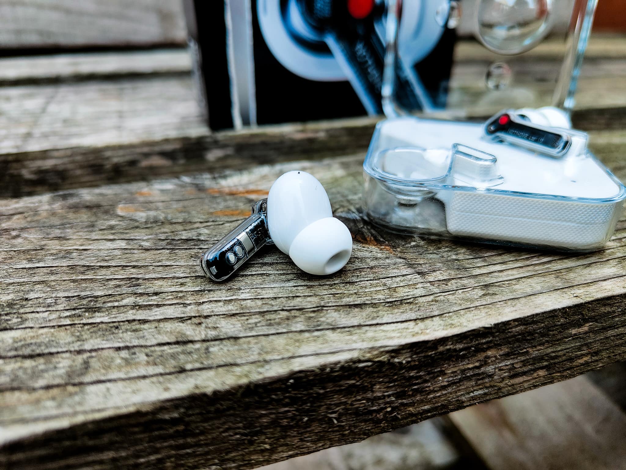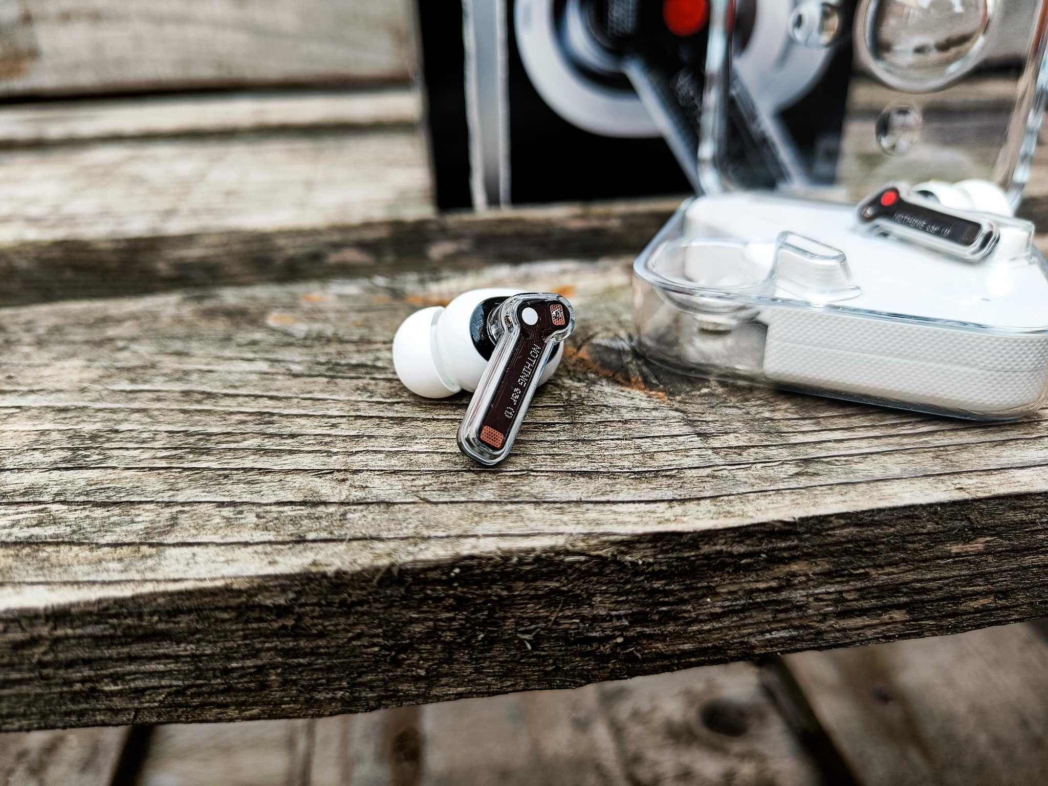 - The earbud stem and housing is also transparent, showing off core components