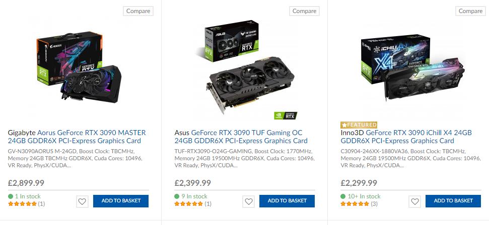 I wrote the below pricing speculation on the 4th of January since then prices have started to decline and availability increased. Back then the cheapest card on Overclockers was £2300. On the 10th of March, this has now dropped to £2000, a 13% drop. That’s still significantly higher than the RTX 3090 MSRP of £1400/$1,499, but at least it is moving in the right direction.