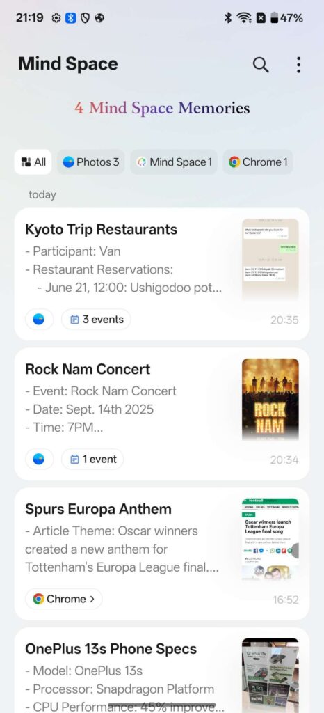 The system intelligently saves relevant on-screen content to a dedicated Mind Space, creating an organised repository of captured information. Beyond simple screen capture, AI Plus Mind uses artificial intelligence to analyse content contextually. For example, it can extract schedule details from an image or text message and automatically add them to the user’s calendar.