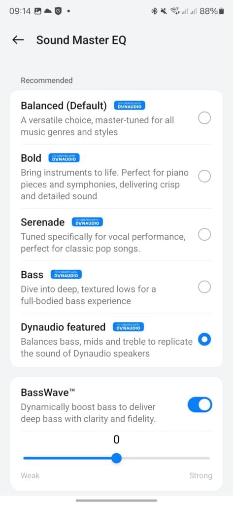 Unlike other brands, the app doesn’t have options to change the codecs used. In my case, I used my Samsung Galaxy S24 Ultra, and neither the app nor Bluetooth settings showed any codec information. I had to go into developer options, where it confirmed it was using AAC. Unfortunately, Samsung does not support LHDC 5.0.