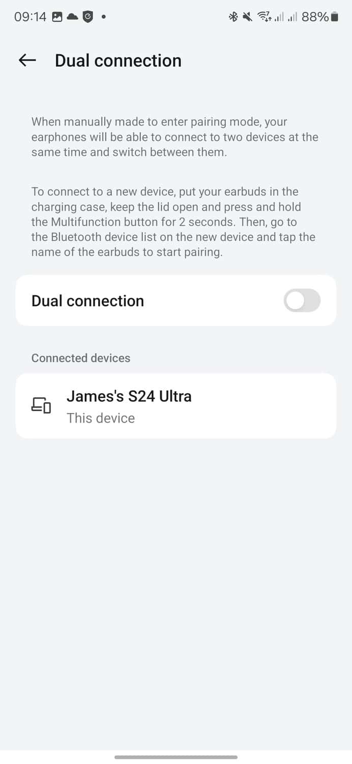 Unlike other brands, the app doesn’t have options to change the codecs used. In my case, I used my Samsung Galaxy S24 Ultra, and neither the app nor Bluetooth settings showed any codec information. I had to go into developer options, where it confirmed it was using AAC. Unfortunately, Samsung does not support LHDC 5.0.