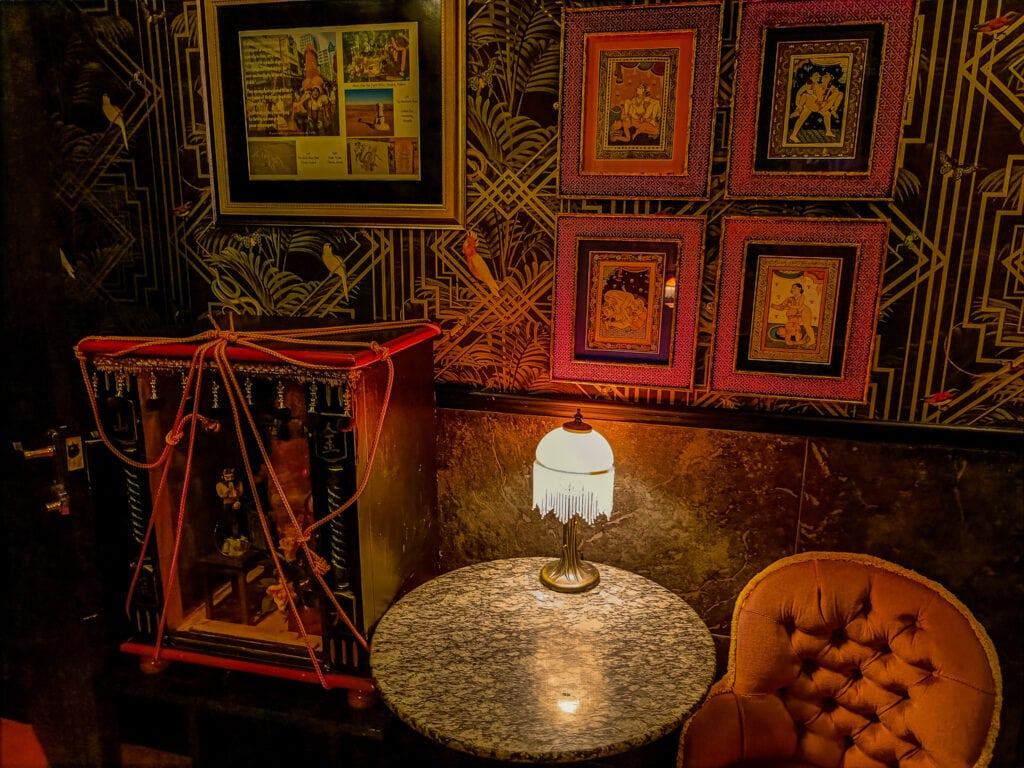 In one of the below photos, I was trying to take a generic photo of a new Spy themed cocktail bar. Instead, the phone decided to focus on my birth mother taking off her bag, adding a bokeh effect elsewhere. The end result is much more artistic than I am capable of.