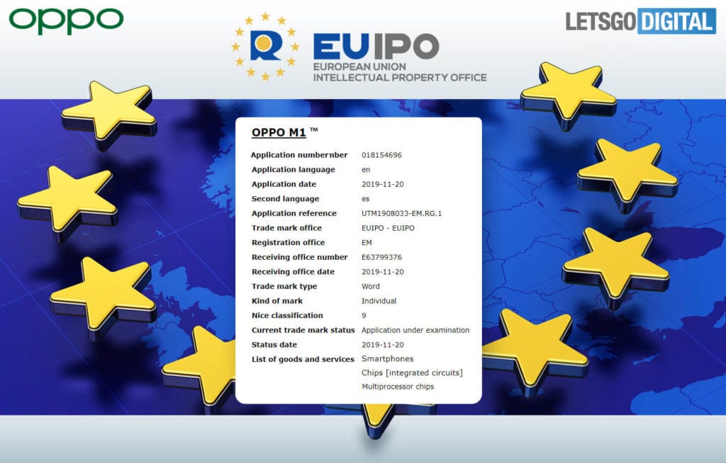 OPPO has filed a trademark with EUIPO (European Union Intellectual Property Office) for the OPPO M1.