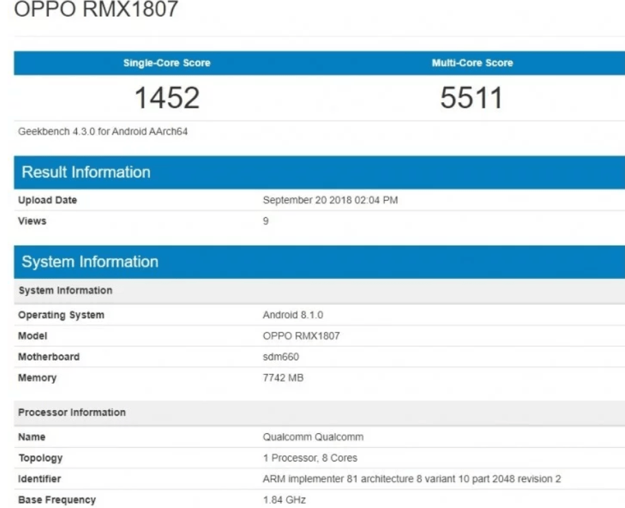 Realme 2 Pro has appeared on Geekbench under the guise OPPO RX1807 of which indicated many of the specs. The Realme 2 Pro will carry a 6.2-inch HD+ display having an aspect ratio of 19.5:9 with a display notch.