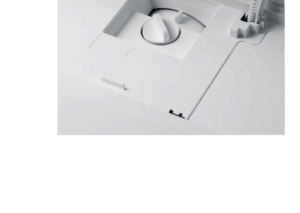By pressing lightly on the top front of the projector we can open a cap where the lens shift can be adjusted with the wheel and we also found the lamp cover here. The lens adjustment wheel is very durable.