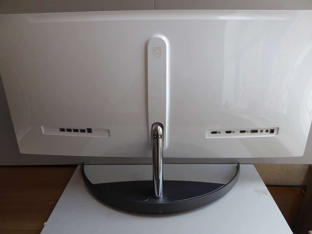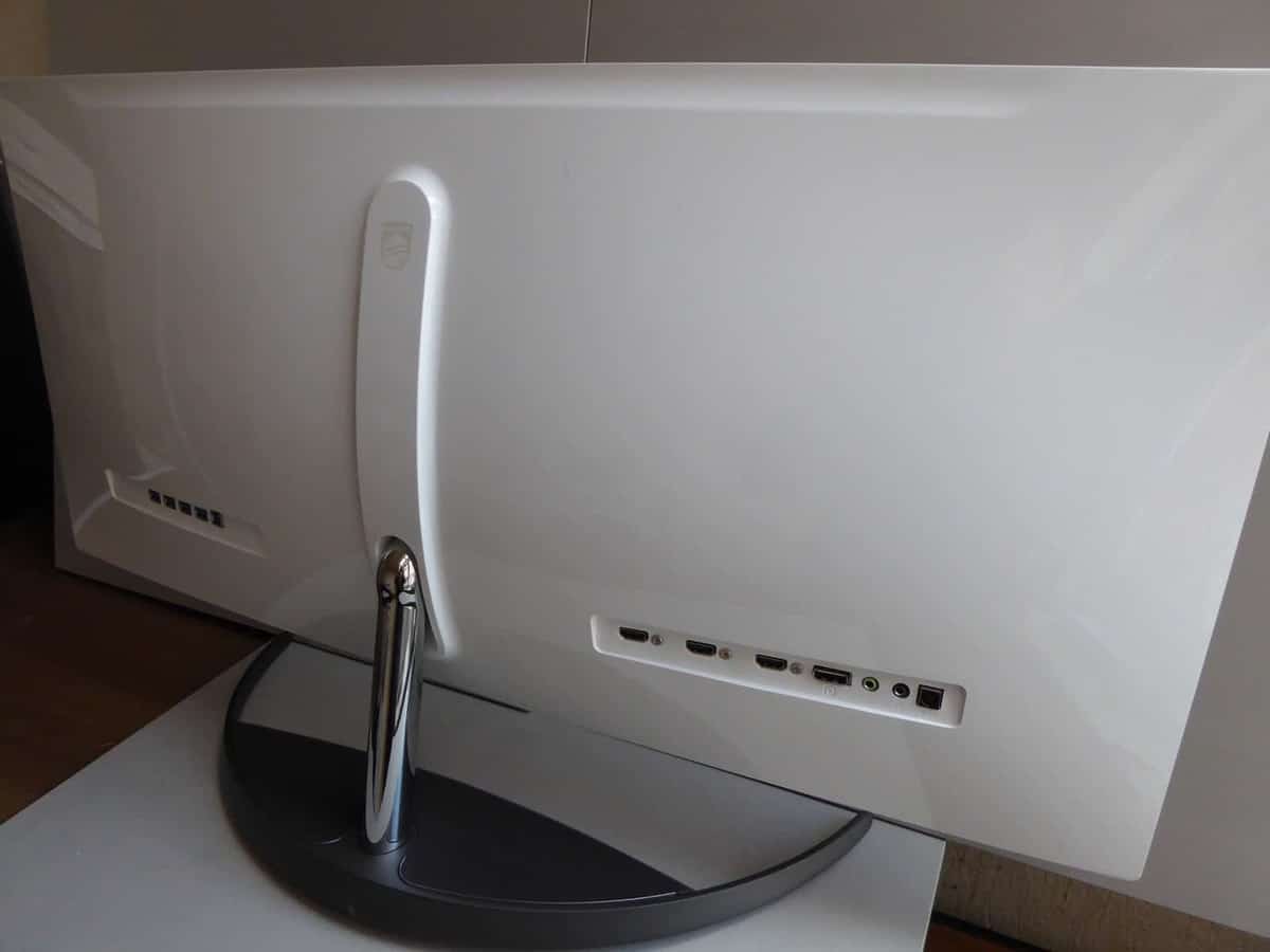 This screen is both massive and beautiful. Its size means it will likely dominate even the largest of desks, and Philips have opted for a glossy white back accompanied with an attractive half oval base which includes the integrated 7w speakers. It is nice to see a monitor that doesn’t rely on an all-black design and it would certainly stand out in an office environment.