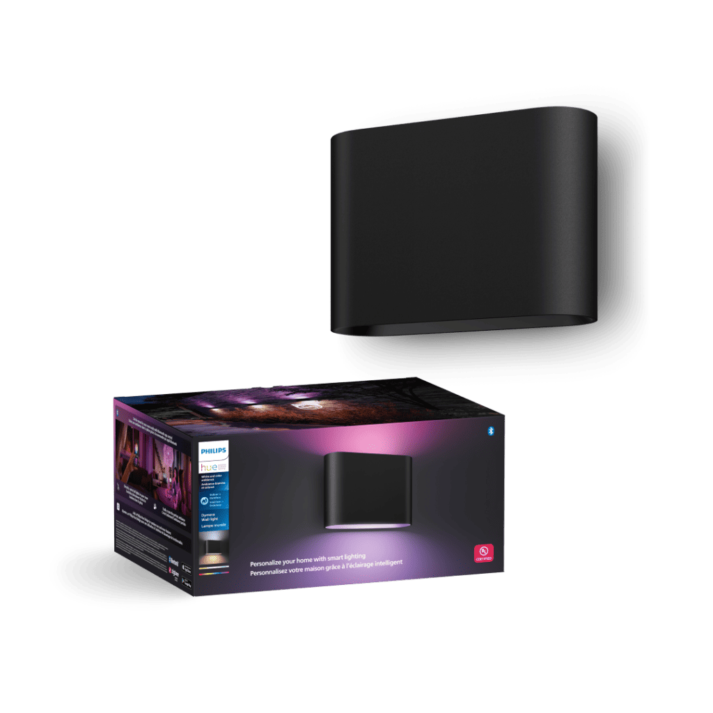 Using the Philips Hue app, users can select from preset scenes in the gallery or customise the wall light’s settings. For example, the upward beam could provide a soft ambient glow in one colour, while the downward beam spotlights a feature wall in a different tone.