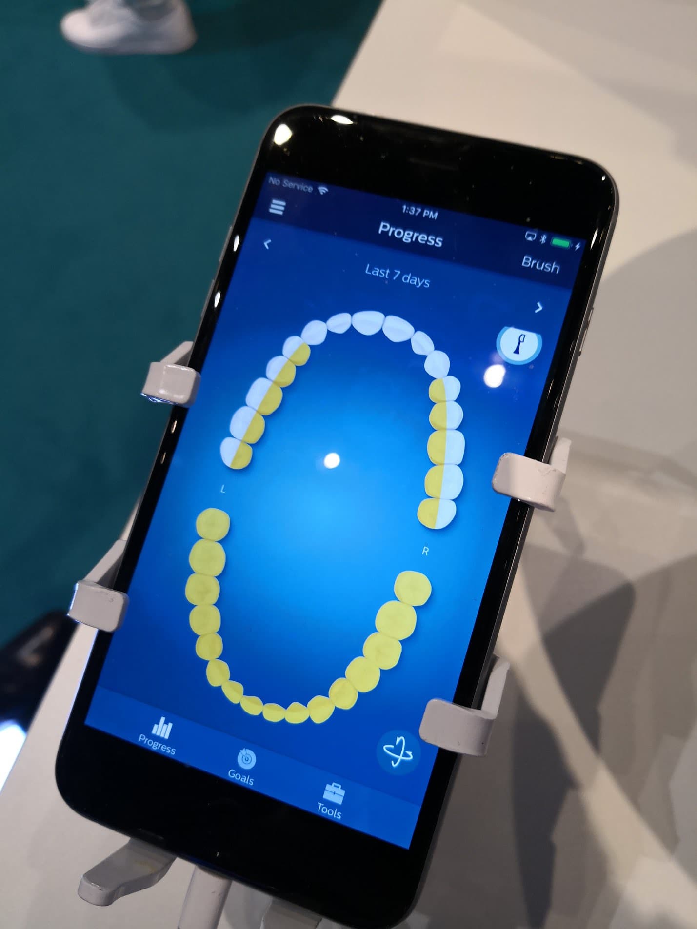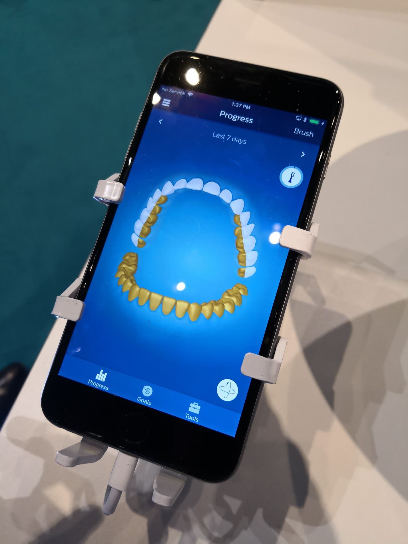 Sensors within the toothbrush feedback data to the app telling it if you are brushing with too much or too little pressure.