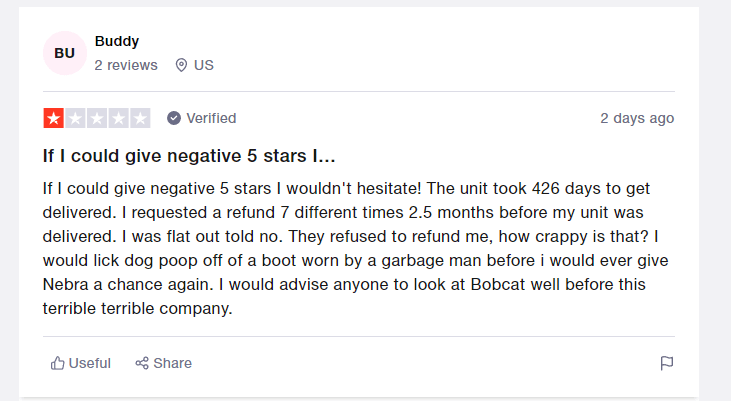 Nebra vs RAK vs Bobcat Shipping Speed