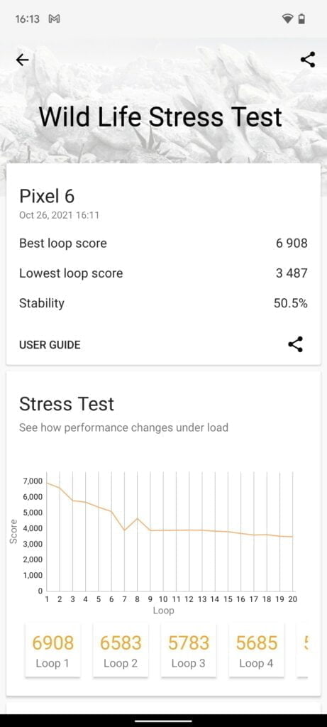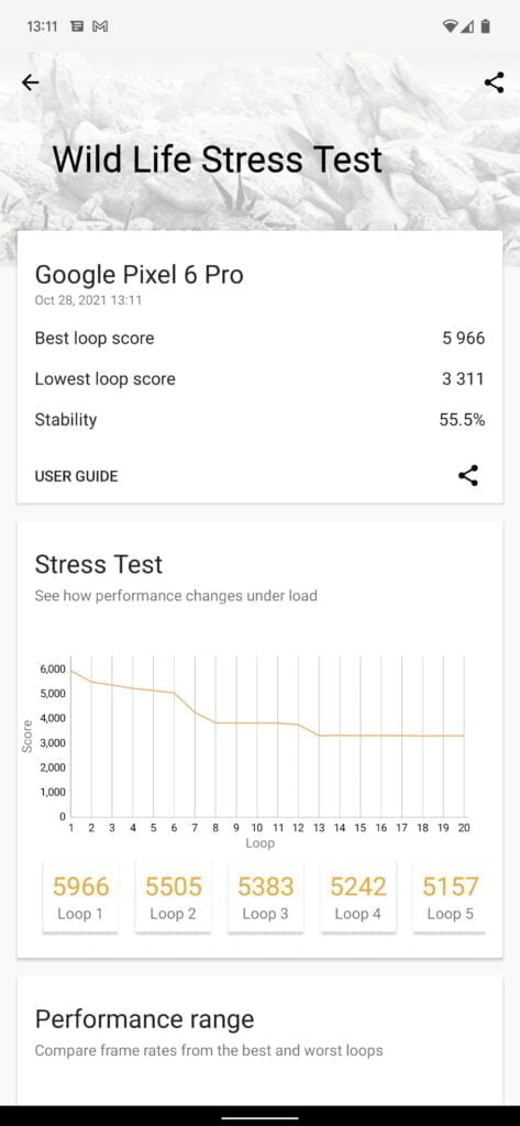 In the 3DMark Wild Life stress test, it showed that the Pixel 6 Pro was capable of scoring the highest result of any phone this year but also suffering from the worst thermal throttling.