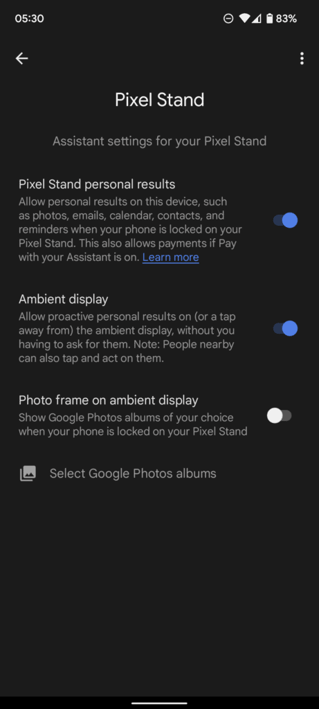 - Pixel can be set up with smart home and display options when charging.