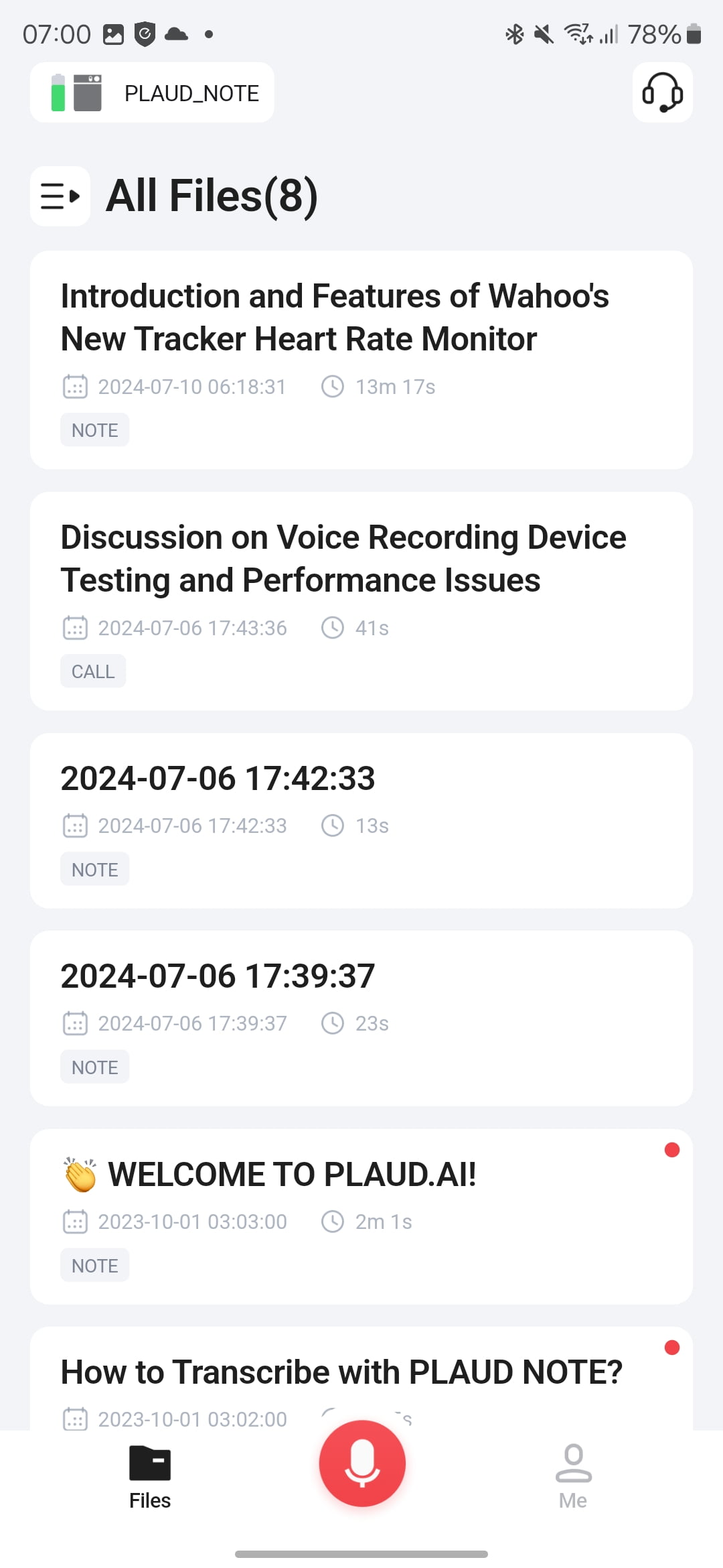 The Plaud Note’s air conduction sensor mode is designed to capture high-quality audio in meeting environments. In practice, the device performs well in most meeting scenarios, capturing clear audio that facilitates accurate transcription.