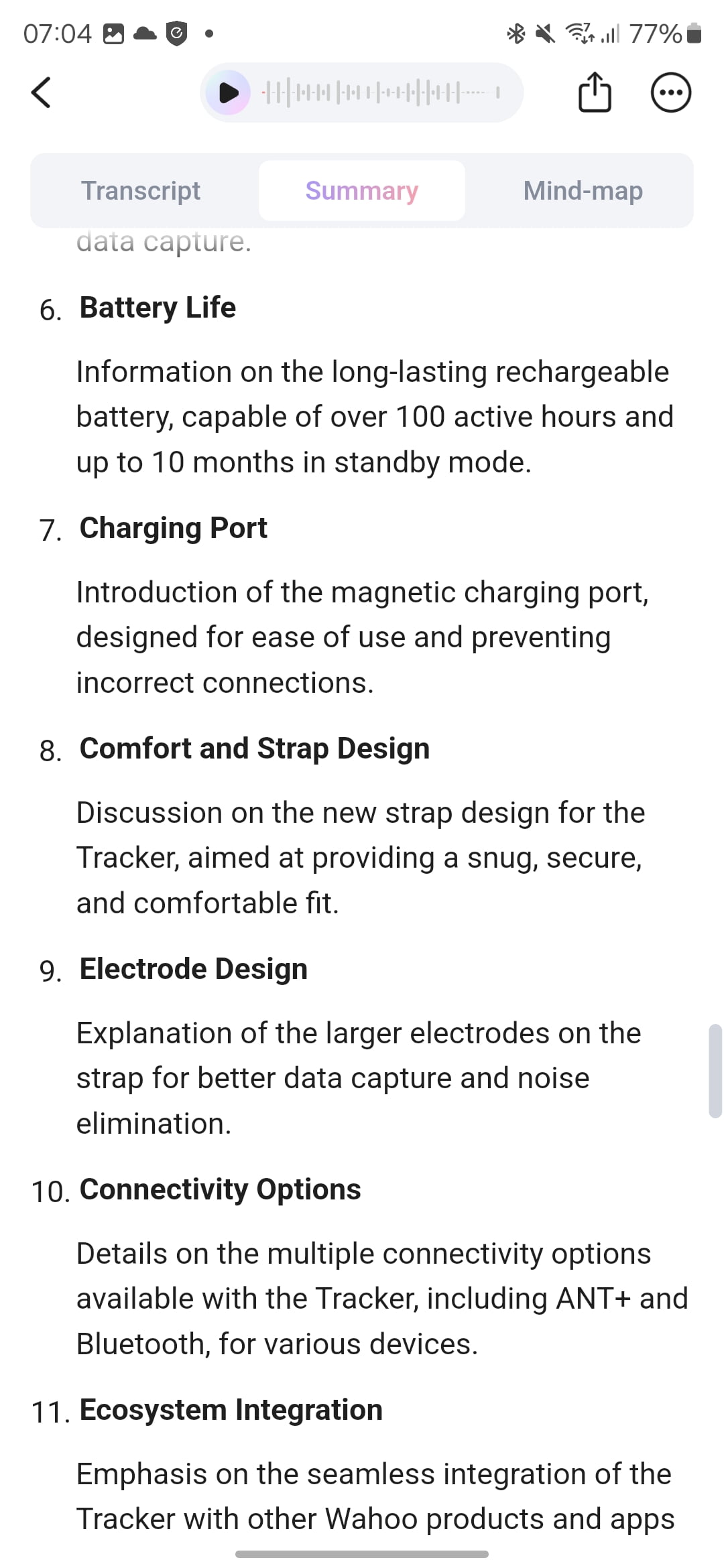 3. Summary generation: Users can create AI-powered summaries of their recordings directly within the app.