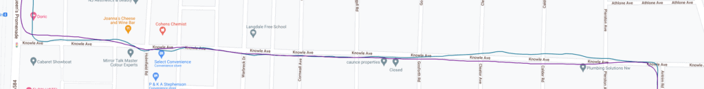 Looking at the GPS, the Poco actually seems a little more accurate than the Garmin. Both watches plot well against each other for the majority of my run, but on one street, the Garmin veers off the right side of the street, which I definitely did not run on. Importantly, it tracked the 5K exactly the same time as my Garmin did, and Strava accepted it as a PB.