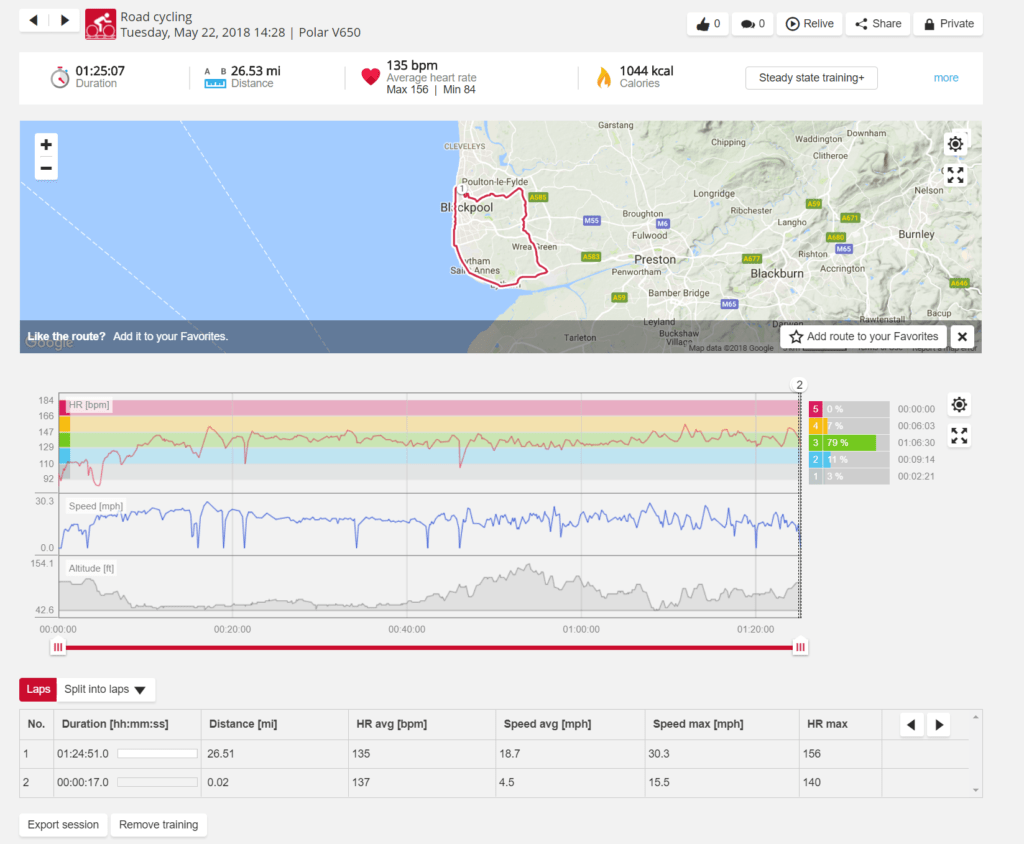 You can zoom into either the maps or the graphs giving you a more detailed view of the session. Within the maps, you can then add a speed or heart rate overlay so you can see exactly where you perform the best.