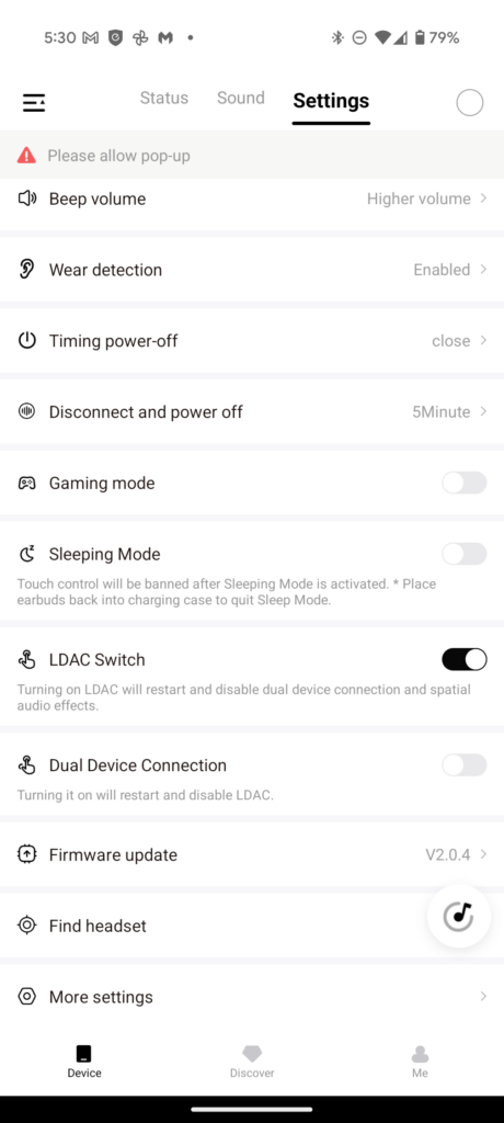 QCY App / Settings