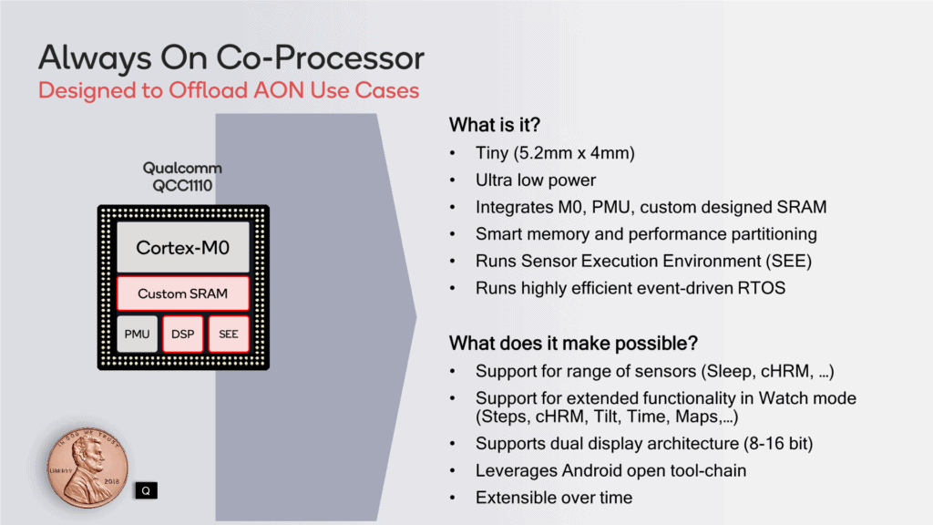 Interestingly, the QCC1110 is a standalone chip, so in theory, someone can make a device based just on this (for ultra low power applications), or even use the Snapdragon 4100 without the co-processor.
