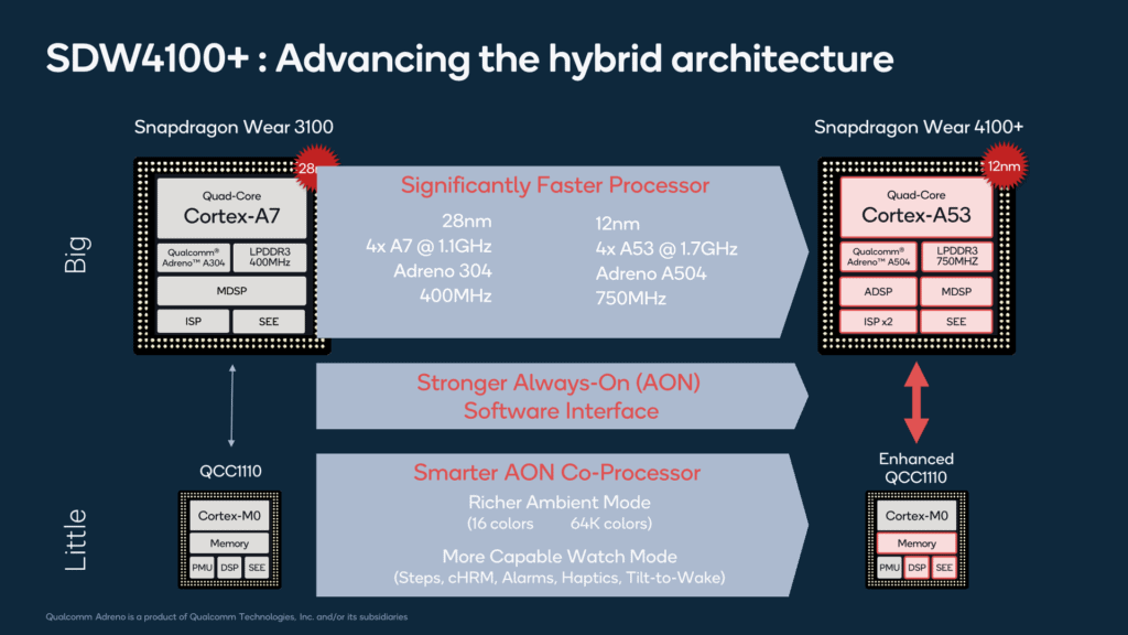 QCC1110 Co-processor – Snapdragon Wear 4100 vs 4100+