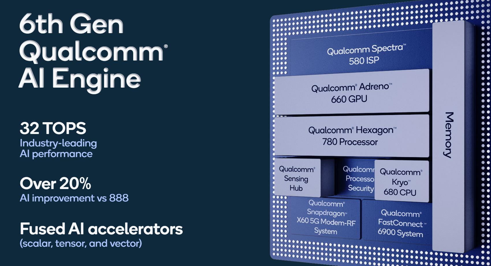 | DSP / NPU | Hexagon 780 32 TOPS AI (Total CPU+GPU+HVX+Tensor) | Hexagon 780 26 TOPS AI (Total CPU+GPU+HVX+Tensor) |