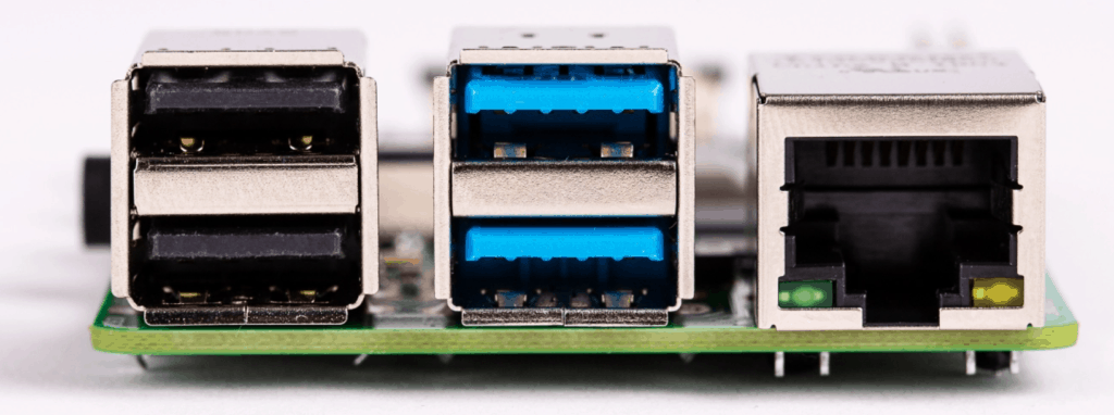 Then the ethernet has been upgraded to full-speed Gigabit Ethernet port whereas the original RPi 3 model B only had 100 Megabit and the B+ has Gigabit, but it was over USB 2.0 and restricted to 300Mbps.