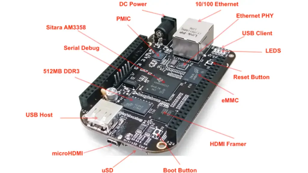 - BeagleBone Black: A low-cost, high-expansion board popular for interfacing with hardware