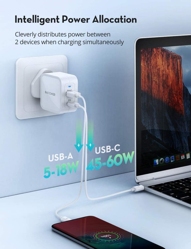 Anker has a 60W PIQ 3.0 GaN similar to this, and they also charge £45.99. The Rav power weighs just 125g with dimensions of 5.5 x 5.5 x 3.5 cm. The Anker is 159g with dimensions of 9.3 x 6.9 x 2.9 cm, so RAVPower has a slight advantage over portability.