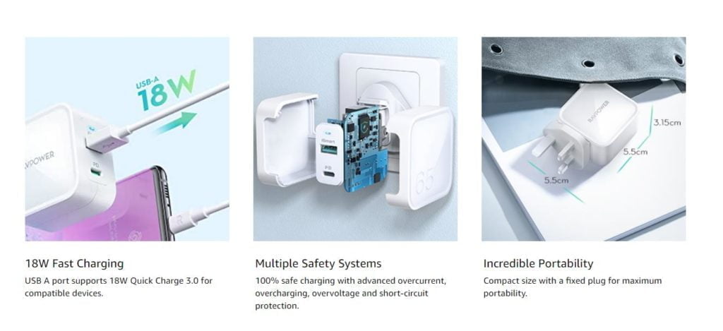 Now RAVPower is back with a dual-port charger, this time with the USB-C port capable of up to 65W, and a USB-A port capable of 18W, with the total output being 65W max.