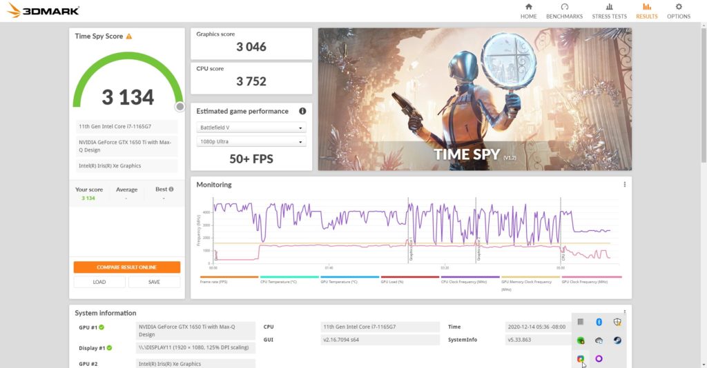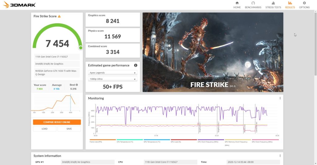 3DMark now provides an estimated game performance for some popular games. For all the games listed this laptop offers 50+FPS at 1080P Ultra.