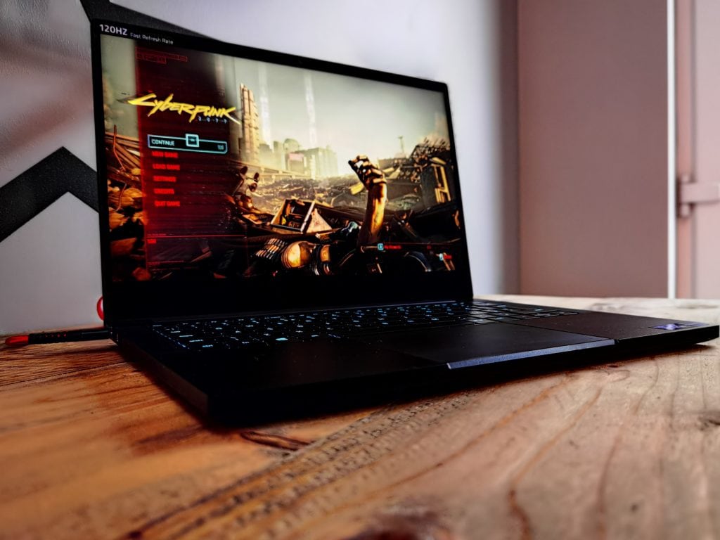 It has some very demanding specs, but the lower settings are quite forgiving. While the display of this laptop is a little small for me to want to use it for a long gaming session, Cyberpunk 2077 was very playable using the predefined settings when it loads up.
