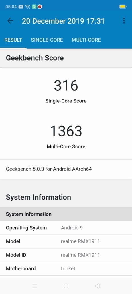 This phone drops the chipset down to the Qualcomm Snapdragon 665 which therefore makes it the lowest spec Realme phone I have reviewed. In reality, the SD665 performs well, only falling slightly short of the Realme 5 Pro with the Snapdragon 712 in Geekbench, and performing about the same as the much more expensive Honor 9X with the ageing Kirin 710F.