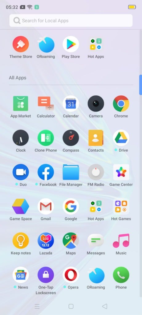However, this appears to have a significant amount of bloatware installed on it compared to the more expensive models such as the Realme X2 Pro. With a quick glance there is at least, App Market, clone phone, compass, games centre, game space, hot apps, hot games, Lazada, one tap lock screen, ORoaming, Theme Store and Webnovel. Facebook and Opera are also pre-installed.
