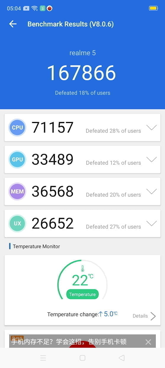 This places it a touch behind the Kirin 710F but about 20% behind the Snapdragon 712 of the Realme 5 Pro.