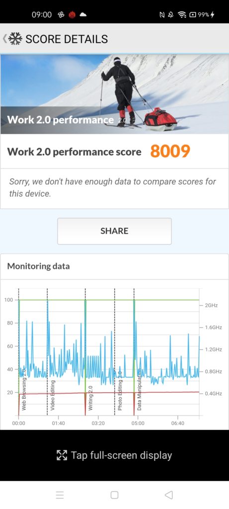 Then, just to really throw a spanner in the works, the Realme 7 achieved a PCMark Work Performance score of 9807, which is 22% higher than the 8009 this scored.