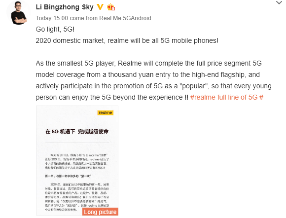 In an interesting turn of events, Realme will be going all-in on 5G in China for 2020. They will not release any new phones that are 4G only.