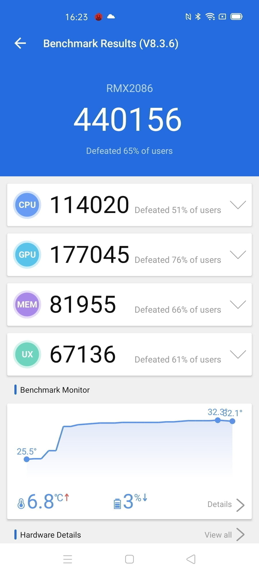 As usual, Realme does some weird things with its smart mode settings, in particular, PC Mark shows it setting the clocks higher than I would expect for day to day use. When running the battery tests, it appears to drop these clocks after a period of time which drops the PC mark score down from over 10K to about 8.5k.