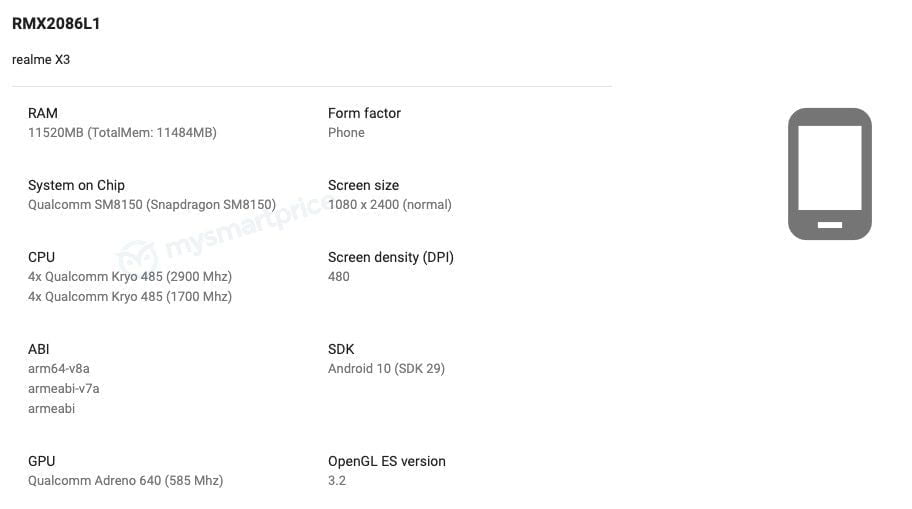 Recently the standard Realme X3 has been spotted on the Google Play Console revealing key specs about the phone.