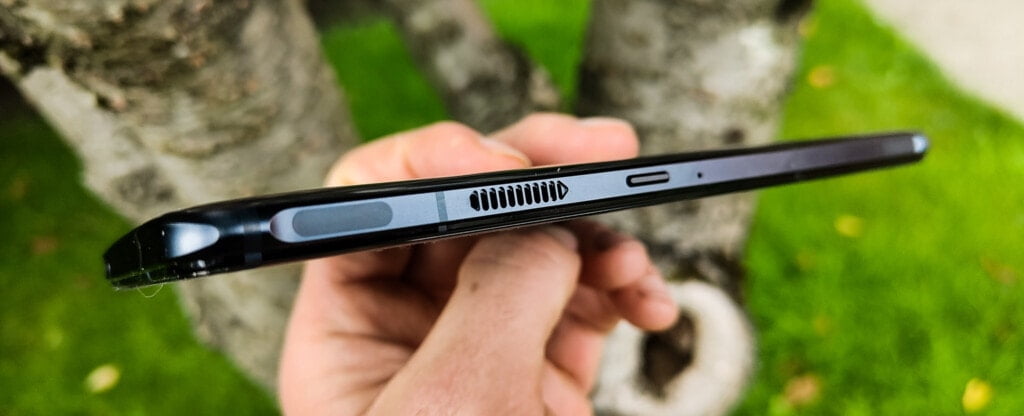 The stand out feature of the flagship REDMAGIC phones is the inclusion of a built-in cooling fan which will automatically activate under a variety of scenarios, but mainly for gaming. On the edges of the phone, towards the top, are two air vents.