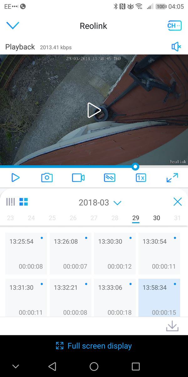 If you click on the playback button, you can then view all the recordings from the camera and optionally download them. I found to access the recordings very simple, and the media started its stream quickly. My PIR settings triggered a lot of recordings due to shadows, but it was usually simple to work out which ones to ignore, the default length appears to be 8 seconds, any recording over this seems to be recording something moving. Playing with the settings will improve reliability. Downloading the videos has some issues, I would occasionally get a download error when the video does download the app appears to break on my phone. The video file is still downloaded though, and I have Google Photos auto-upload them, but you can also just pull them off manually.