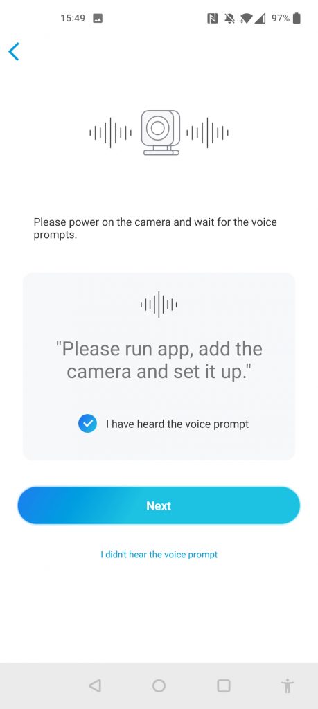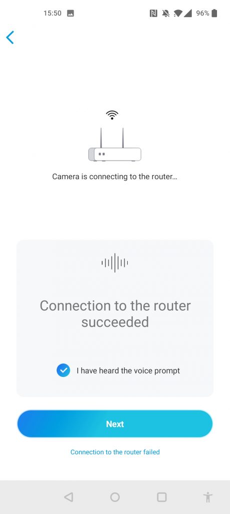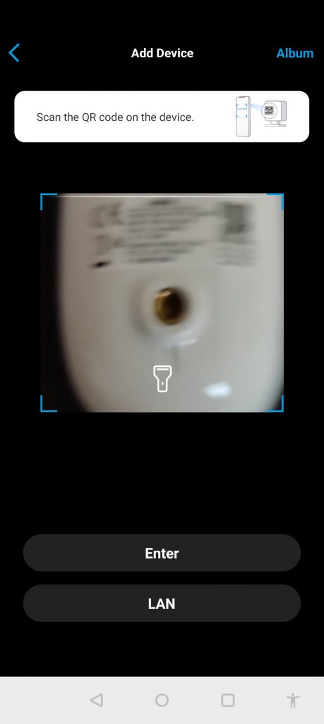 Once you scan in the QR code to add it to your system, you will need to set up Wi-Fi on the camera. This is done by passing the detail via a QR code on your phone screen, and the camera picks it up.