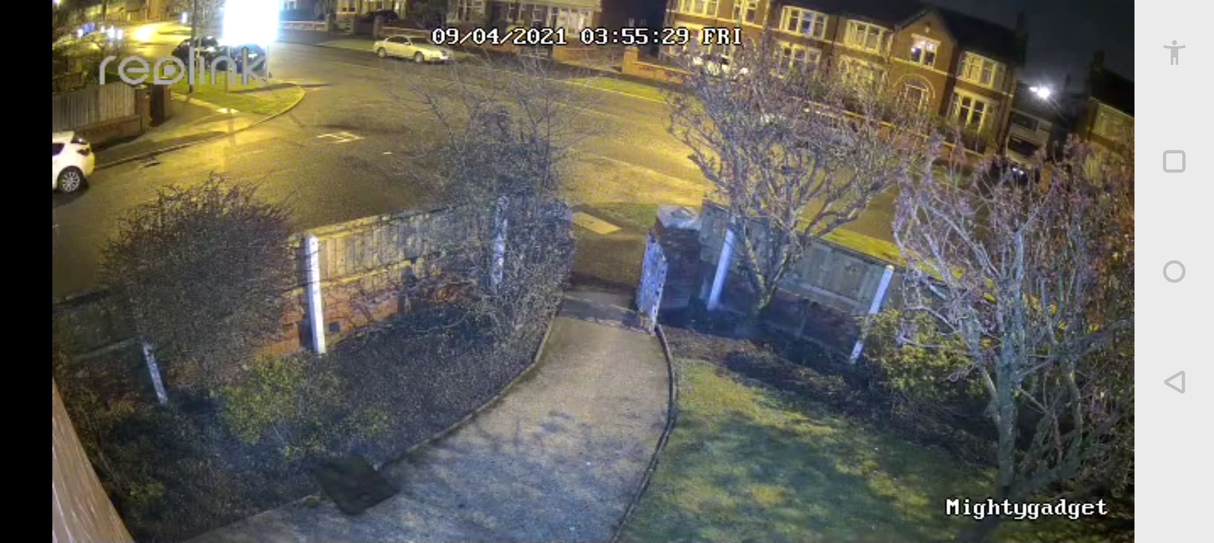 Similarly, night time footage works well. While this doesn’t use a Sony Starvis sensor when the spotlight activates, the camera switches to colour. The image pixelates a little as it switches to colour and back again, but less so than other cameras I have used.