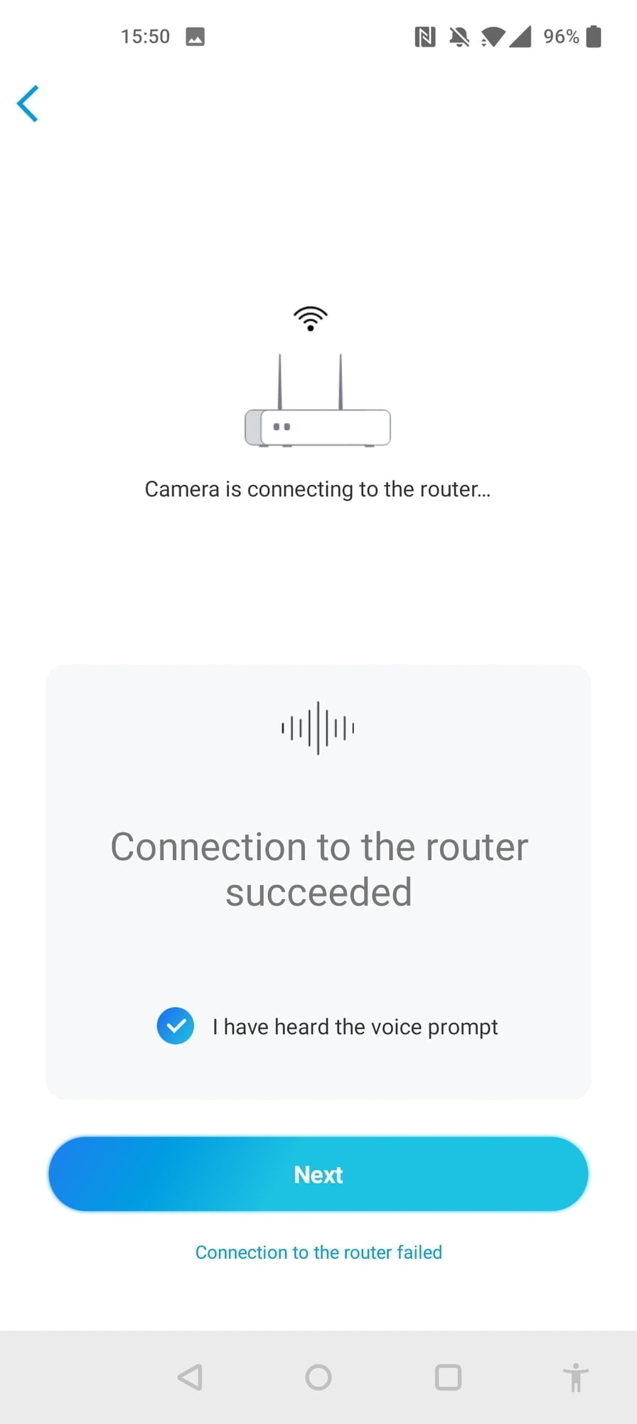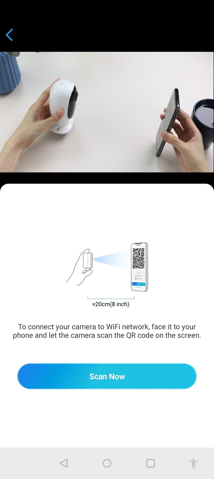 Once you scan in the QR code to add it to your system, you will need to set up Wi-Fi on the camera. This is done by passing the detail via a QR code on your phone screen, and the camera picks it up.